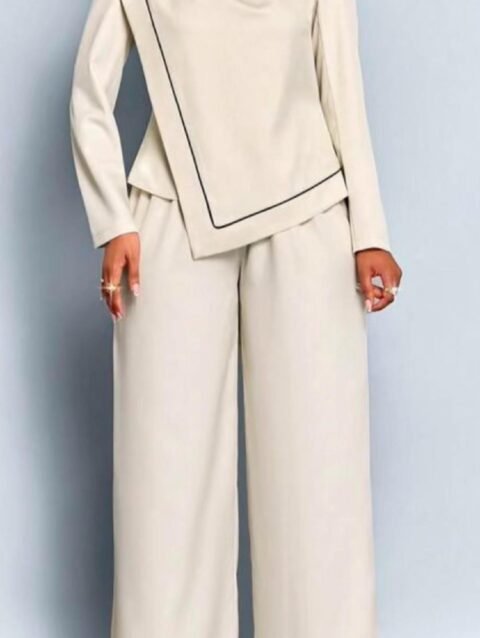 A-Zip-Up Split Side Puff Sleeve Jacket Two Set
