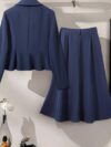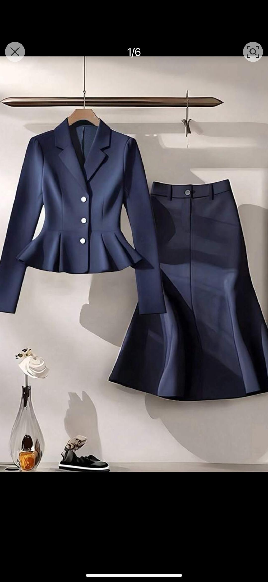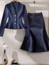 The set might include a fitted top or jacket paired with a flowing fishtail skirt or pants, both crafted from luxurious fabrics that drape elegantly on the body. The overall effect is one of understated glamour, perfect for making a statement at any occasion.