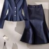 The elegance of this set lies in its versatility – it can be dressed up for formal events, such as weddings or galas, or dressed down for a more casual, yet stylish, appearance. The fishtail design adds drama and flair, while the cinching at the waist provides a touch of refinement.