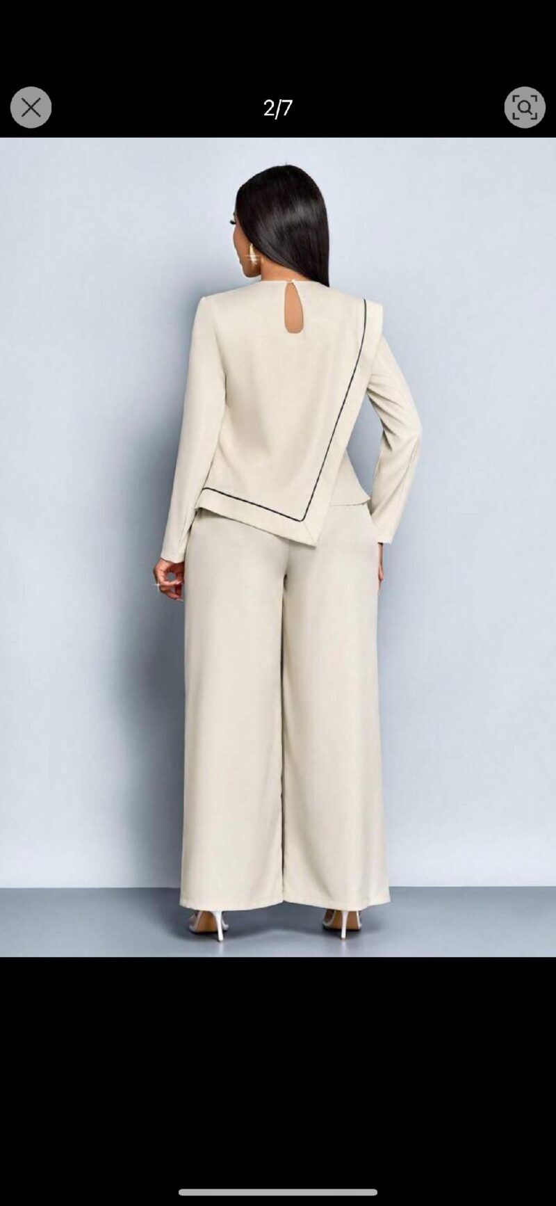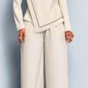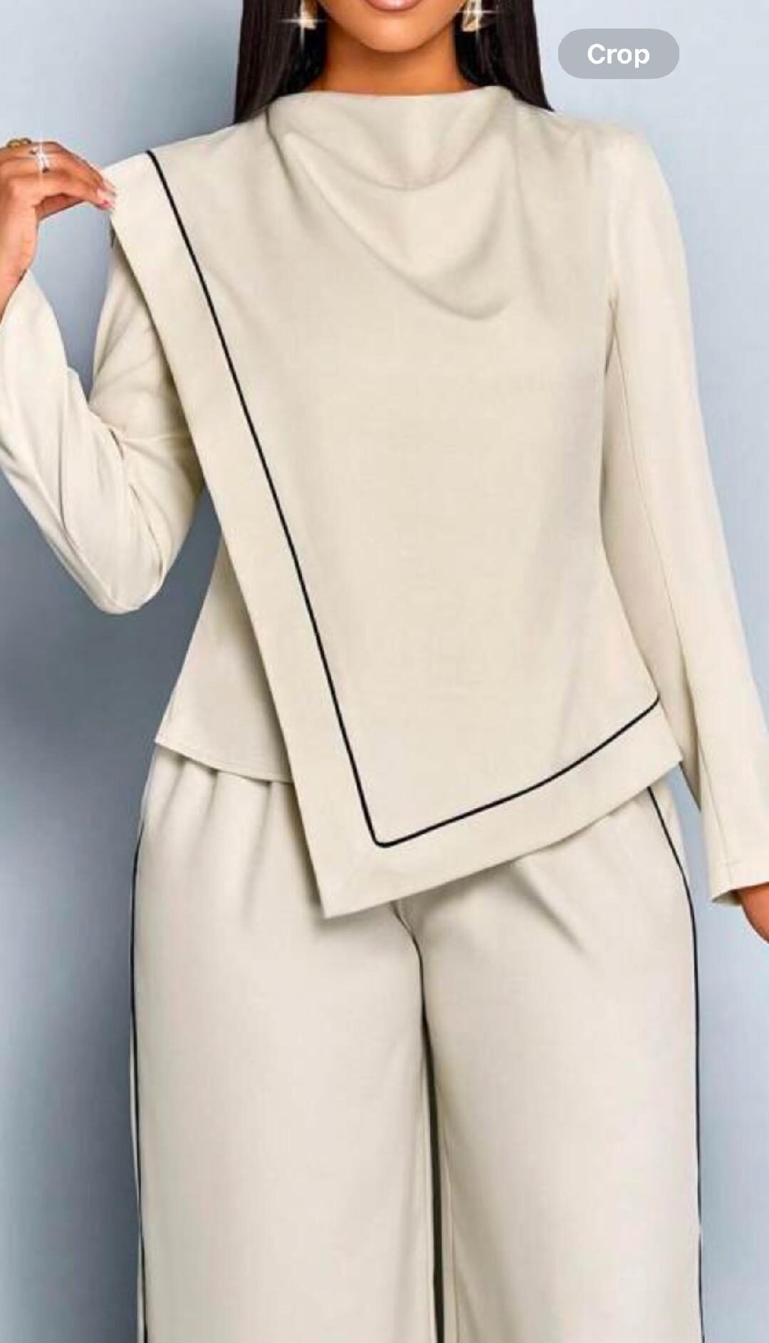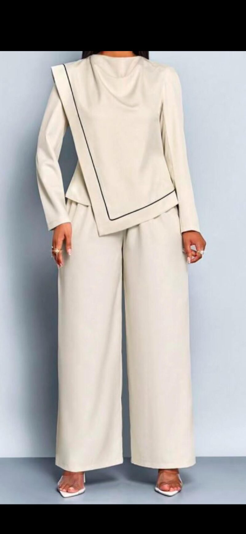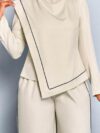 2-piece set likely features a striking splash collar design, adding a touch of sophistication and flair to the overall look. The splash collar might be accentuated with subtle details like embroidery, patterns, or textures, elevating the ensemble’s elegance.