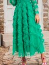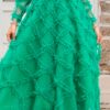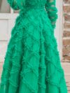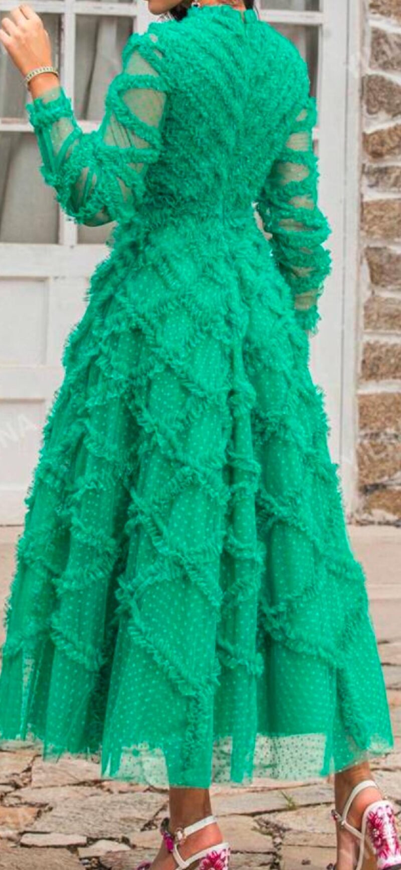 The puffy silhouette of the dress adds a playful, whimsical touch, while the high-quality fabric ensures a luxurious feel and drape. The dress might be perfect for special occasions like weddings, formal galas, or cultural celebrations.