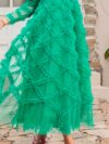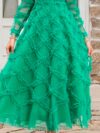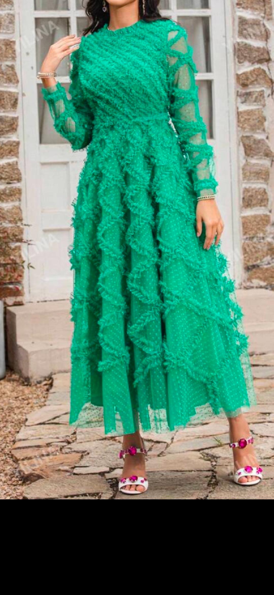 This dress likely features intricate Turkish sequencing, known for its vibrant colors and meticulous craftsmanship. The sequins might be arranged in elaborate patterns, adding a touch of luxury and sophistication to the overall design.